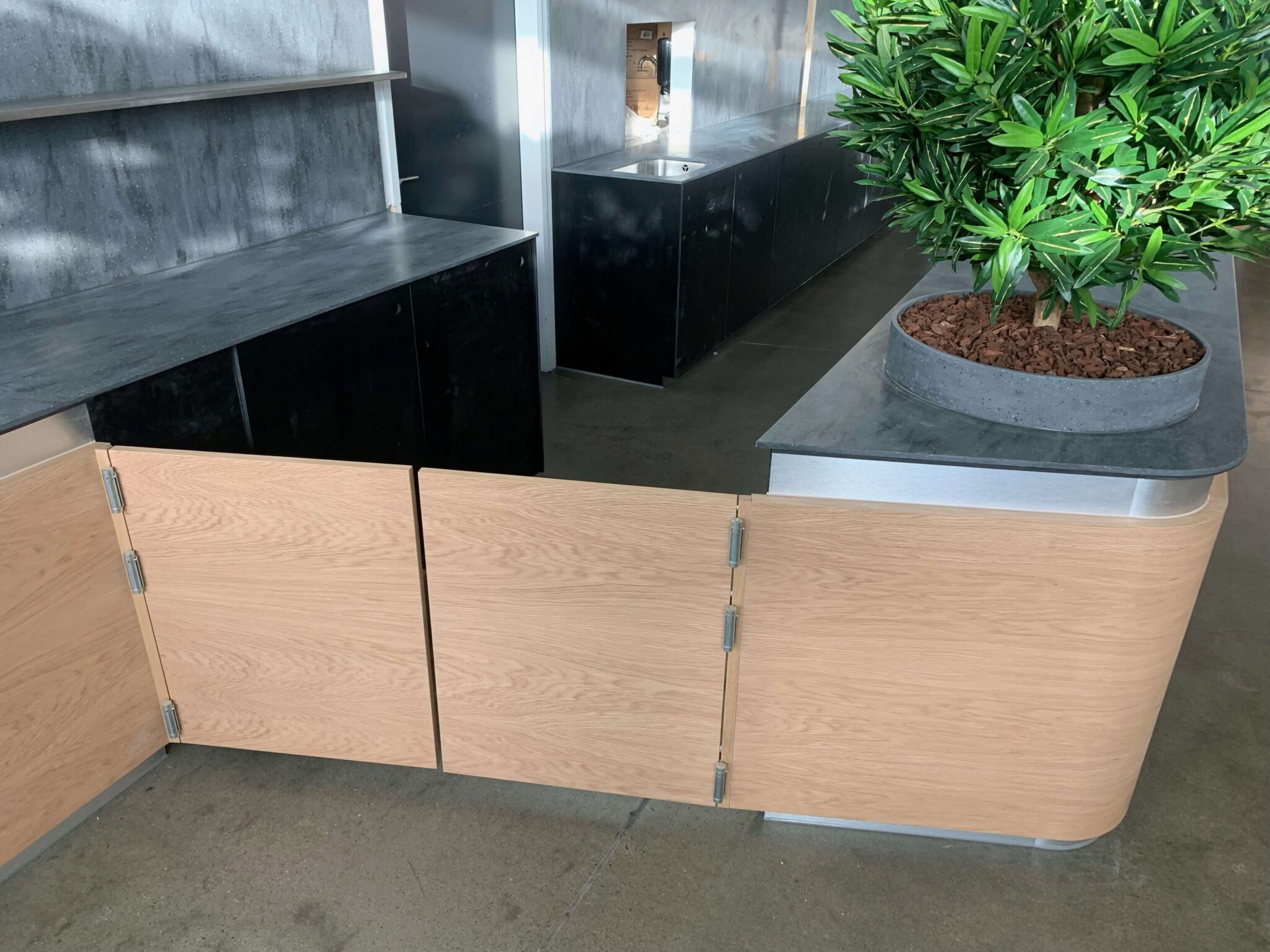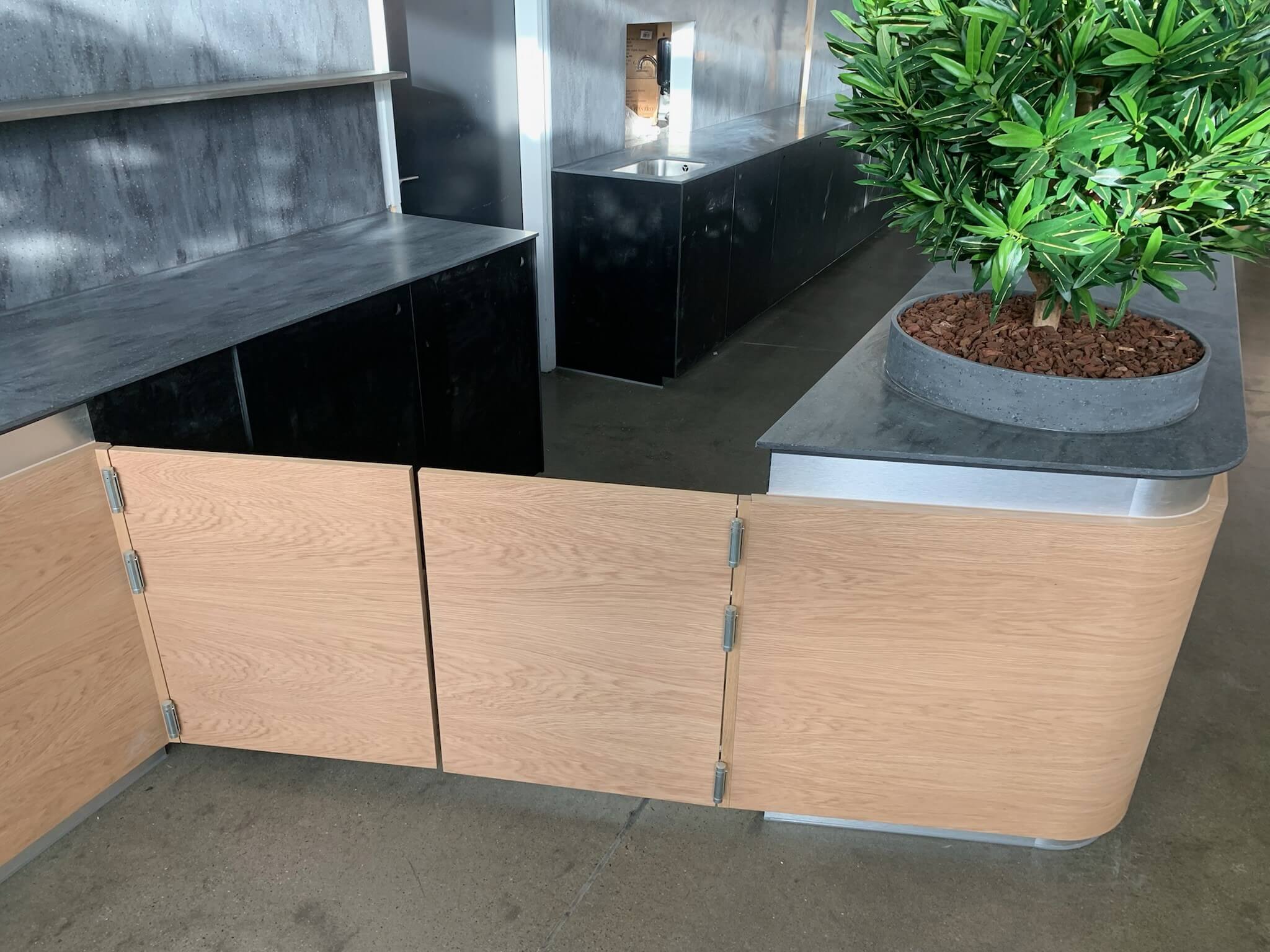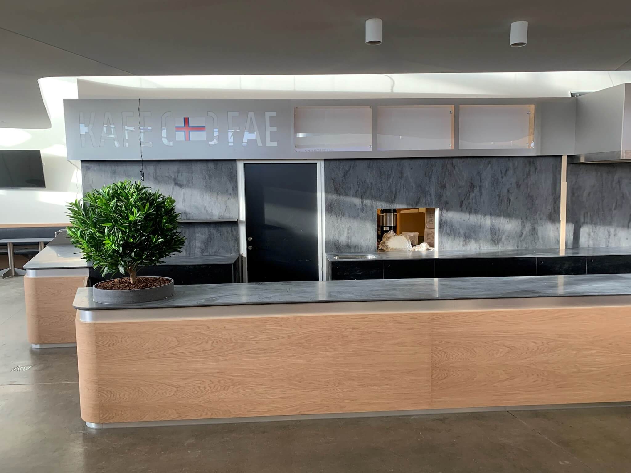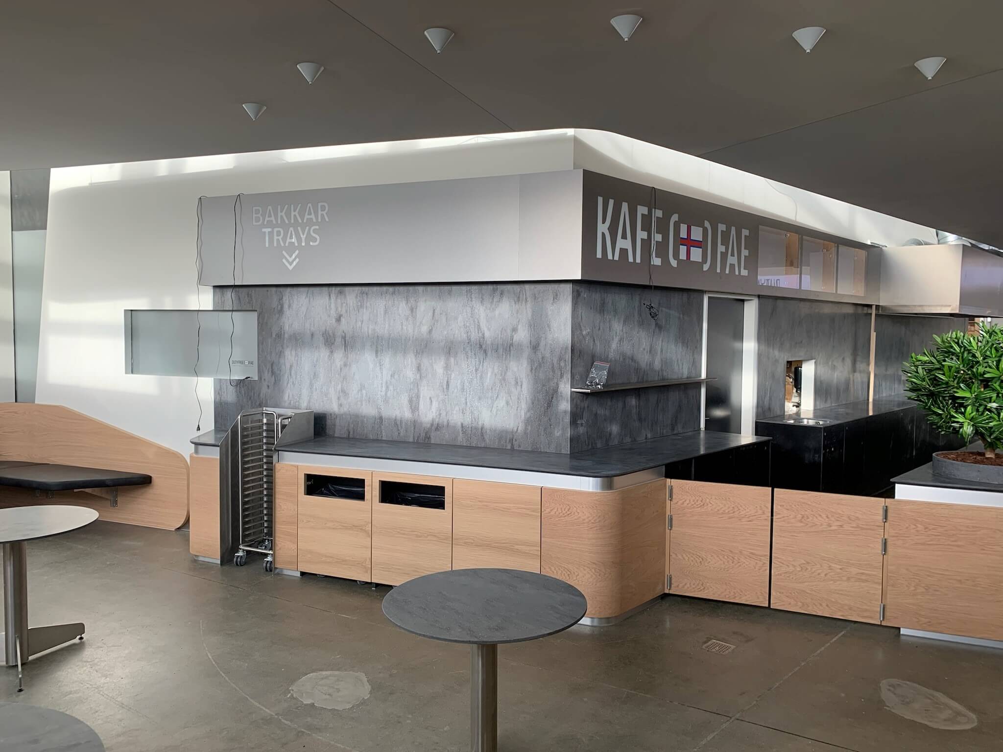 CJA har leveret inventar til Vágar Lufthavn på Færøerne i et spændende projekt med mange flotte detaljer. Materialerne inkluderer Corian til vægpaneler og bordplader, specialdesignede bordstel og bakkevogne i rustfrit stål, bænke med sort læder, korpusser i kompaktlaminat samt specialdesignede halvvægge i egefiner og akryl med LED. Projektet er desuden komplet med planter og træer, der skaber en indbydende atmosfære.